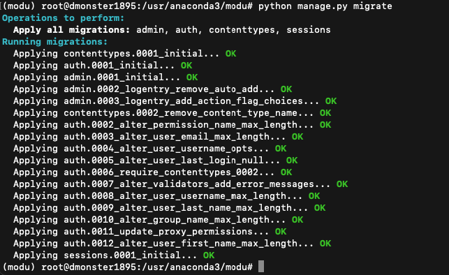 ExecStart=/root/anaconda3/envs/modu/bin/gunicorn --workers [cpu 1(grep -c processor /proc/cpuinfo) *2 +1] --bind 0.0.0.0:8000 {프로젝트명}.wsgi:application --timeout 600